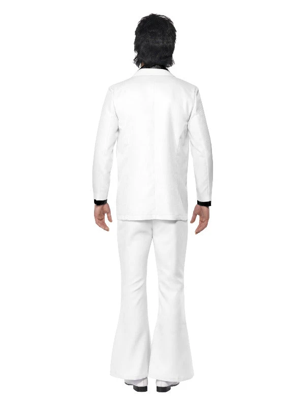 You can be part of that 70’s show in this White 70’s flared suit! Complete with mock shirt. Great for 70’s themed parties.