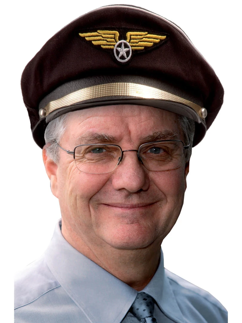 Come Fly With Me in this adult Pilot Hat. Black with gold trimming and applique.