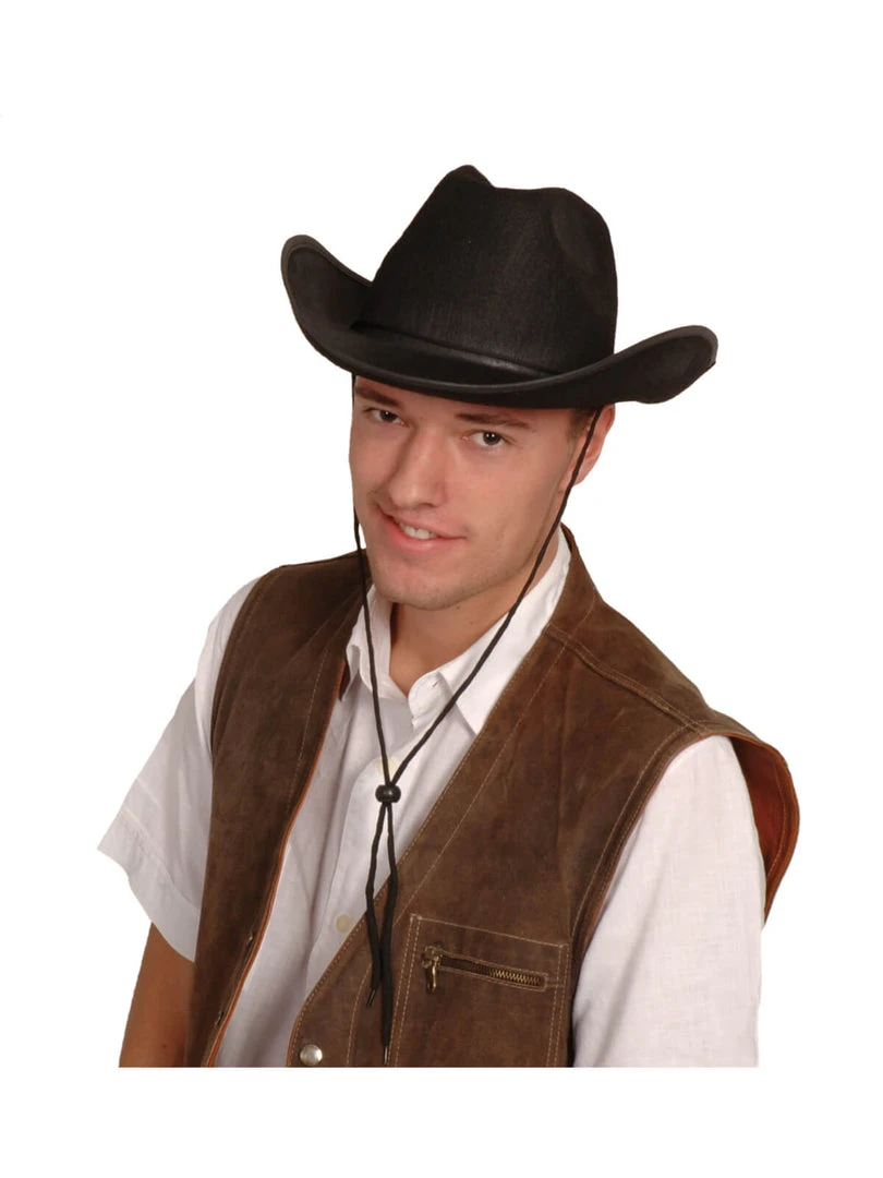 This Black felt Cowboy Hat is an extremely versatile costume accessory. It will cover many looks. A great one for any western style party.