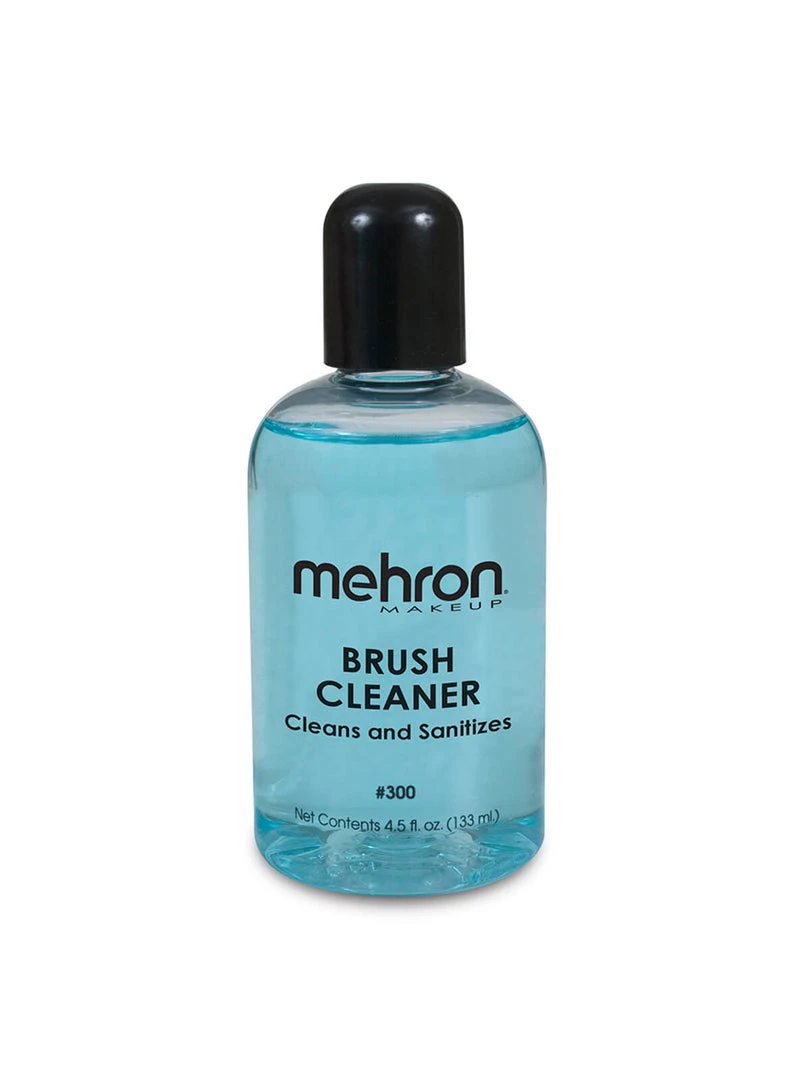 Mehron Brush Cleaner will cleanse and sanitize brushes on the go with our rinse free Brush Cleaner. A blend of grease cutting solvents that cleans and disinfects natural and synthetic brushes. Evaporates quickly allowing for fast reuse of brushes.