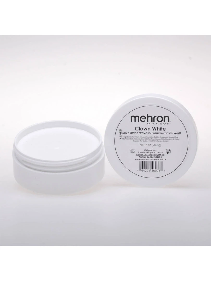 Mehron Clown White is the first choice of professional clowns and mimes. This super smooth, ultra-white cream covers efficiently without dryness or cracking, even under the most demanding performance conditions.