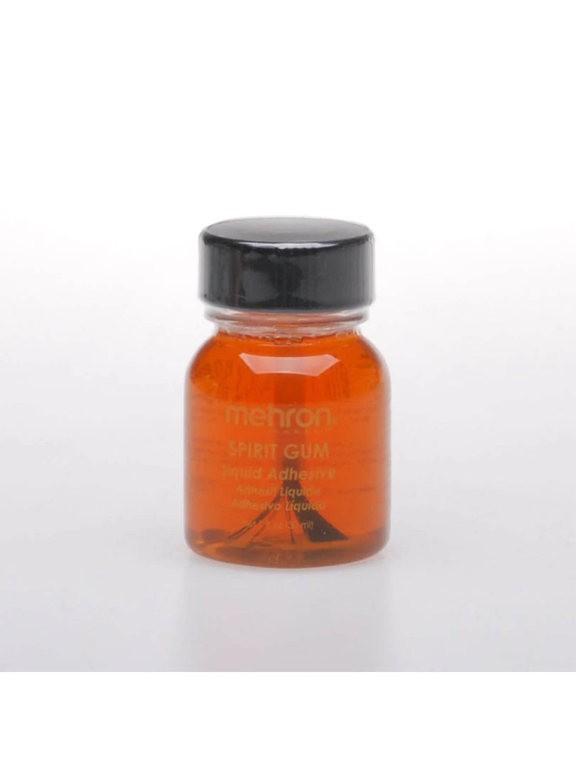 Mehron Spirit Gum is an amber colored, alcohol/resin liquid adhesive is a solution for adhering Crepe Hair, wigs, prosthetic noses, bald caps, etc.