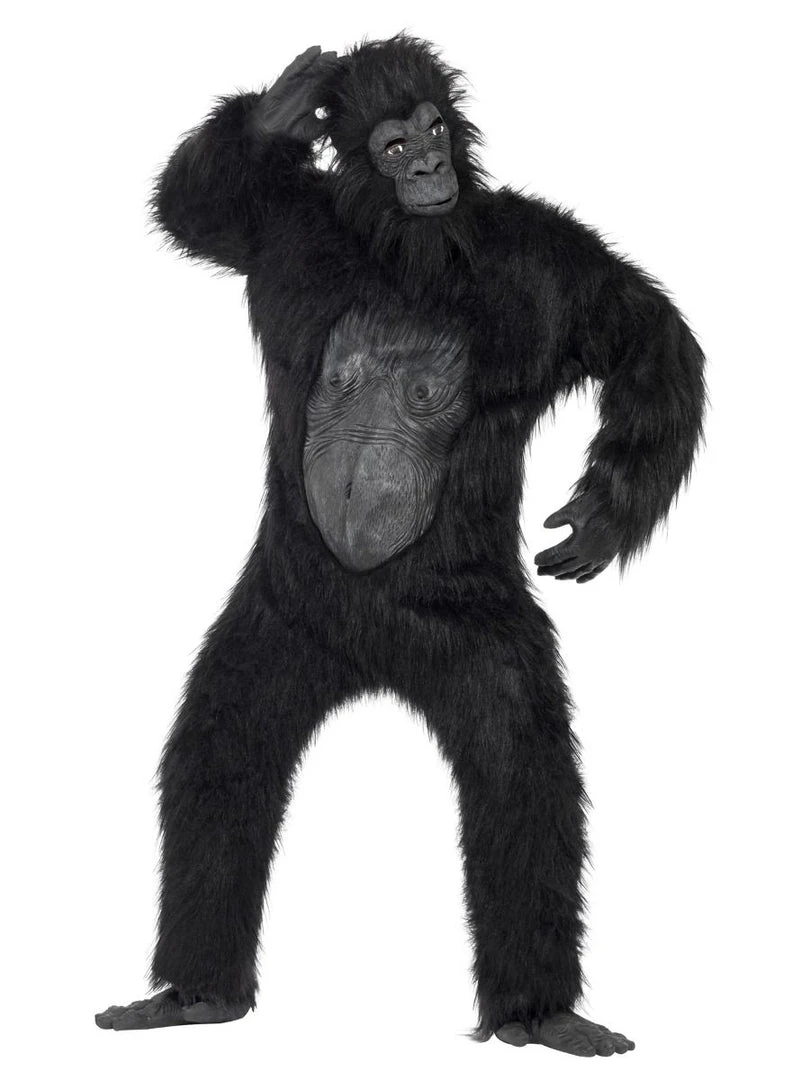 Deluxe Gorilla Costume, Black, Bodysuit with Rubber Chest, Mask, Hands & Feet