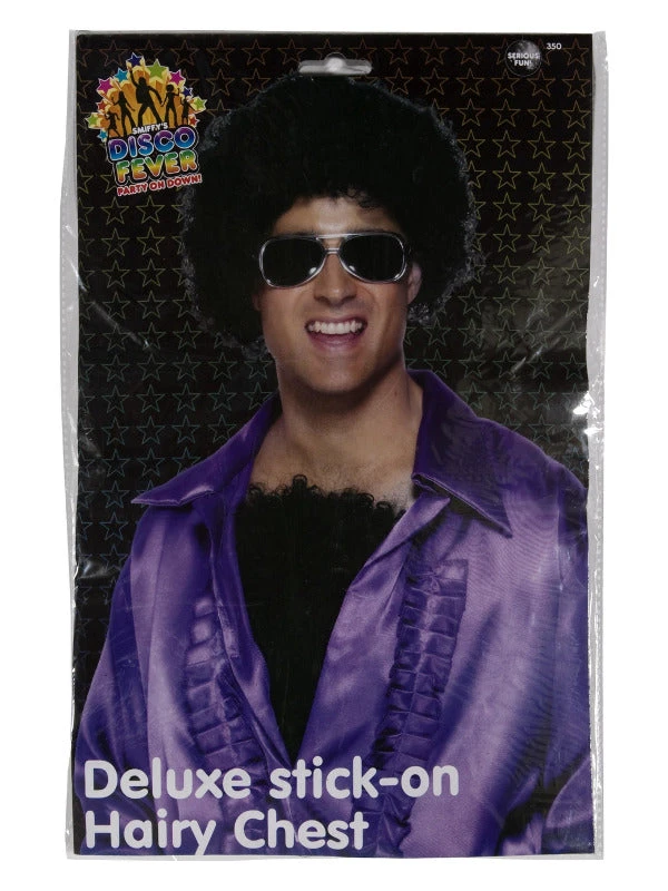Feel like you need to get something off your chest?! Embrace that 70’s look by wearing this deluxe hairy chest! Complete with afro style wig and you’ll get yourself into a hairy situation! Great for a 70’s disco party.