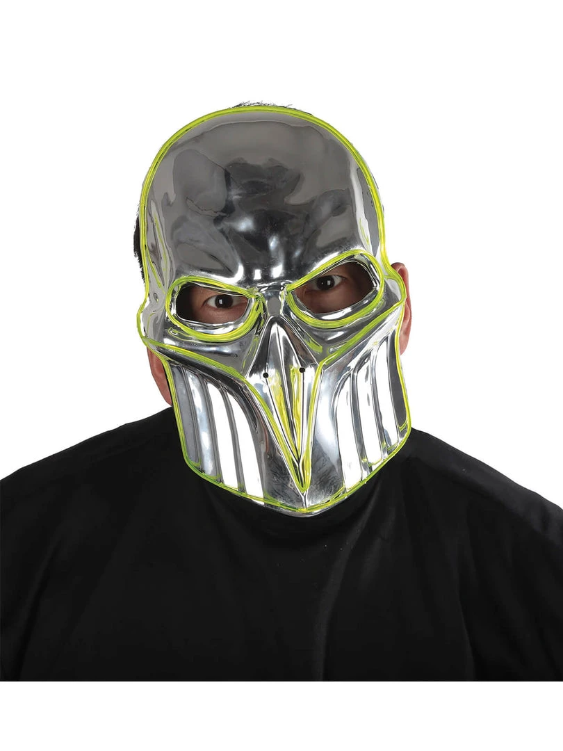 Straight from the future, this Alien Diamond mouth adult mask overhead mask has a light-up feature. Great for festivals, Halloween, and raves.