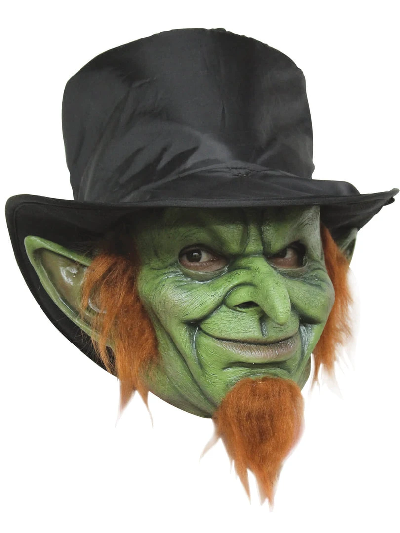 Like he just stepped out of the fairy forrest! This Mad Goblin overhead mask is the perfect costume for menacing about in! Green with fabric hat and ginger beard & sideburns.