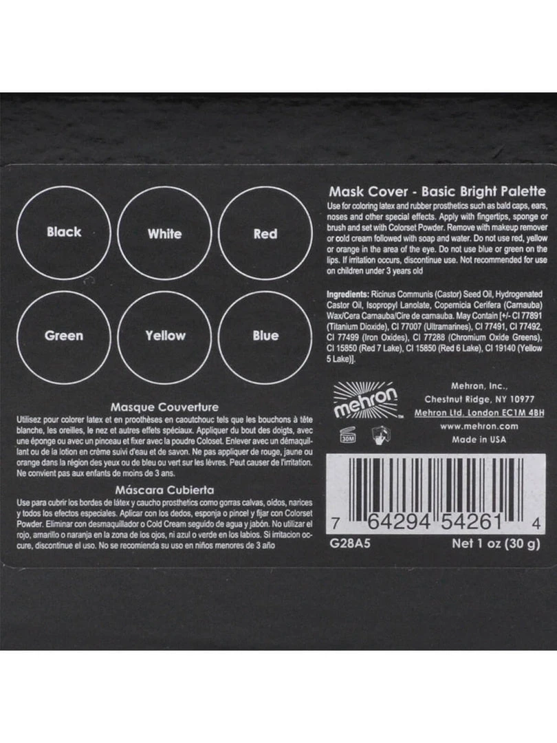 Mask Cover (30 gram palette) was developed in collaboration with Academy Award winning makeup artist, Dick Smith. This special castor oil-based formula will not break down synthetic prosthetics like a petrolatum or mineral oil based formula would. Mehron’s Mask Cover is the first choice of professional special effects artists for use on latex, rubber and foam prosthetics.