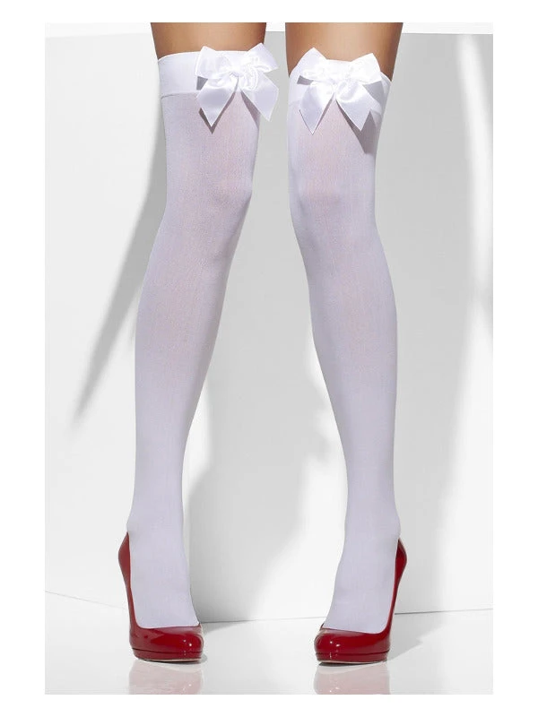 Add the perfect touch to your costume in these sexy white hold up stockings with a bow at the top! Also great for everyday wear!